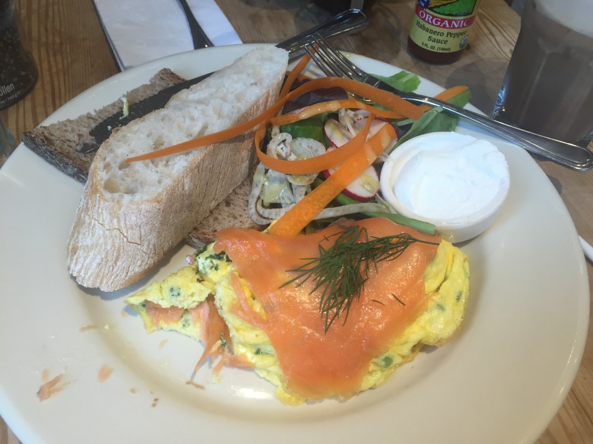 The salmon and chive omelet. This was also delicious. I do not understand why this place is only a 3 star on Yelp. I thought the service and food made this worth a stop. Between these 2 meals, I would get the goat cheese again.