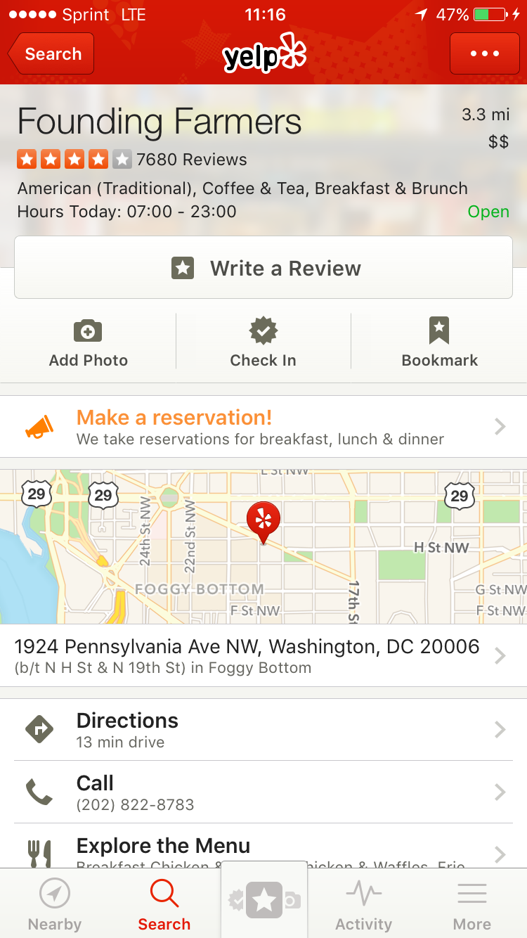 Brunch is a way of life in DC and I LOVE IT. Brunch is my favorite meal. Most places only do brunch on the weekend. You will need a reservation if don’t want to wait 2 hours for a table. Sunday we did brunch at