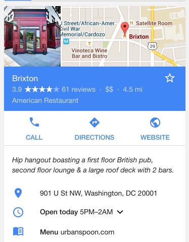 U street reminds me of the college bars back home. Where it’s all frat boys and you can’t move in the bar. I don’t know about you, but I like being able to breathe. We went to Brixton on U Street.