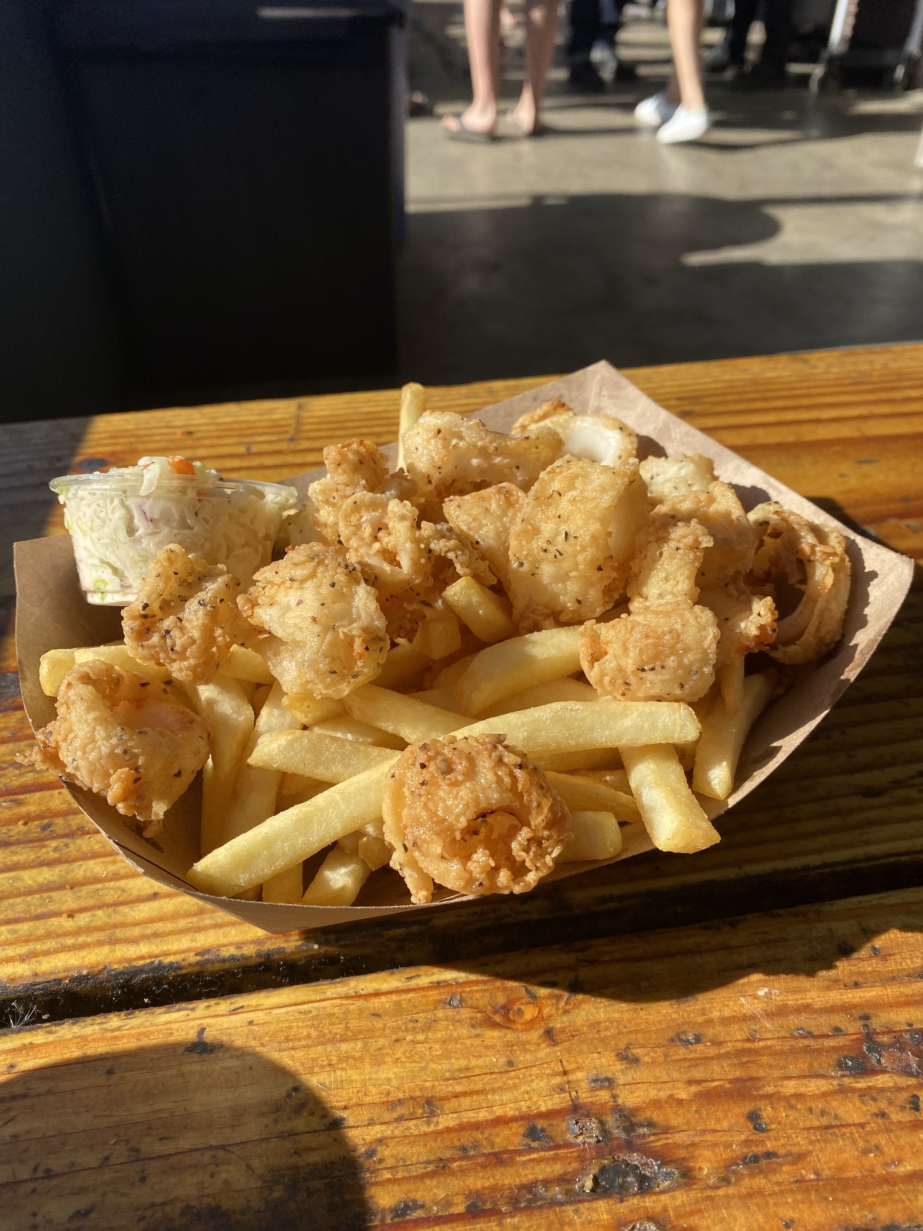 After the Getty Villa, I wanted to try this restaurant in Malibu since we were already there. I had read it was a no-fuss, unique place with great seafood. I got the seafood platter for $36 and Nik got the calamari platter for $12.